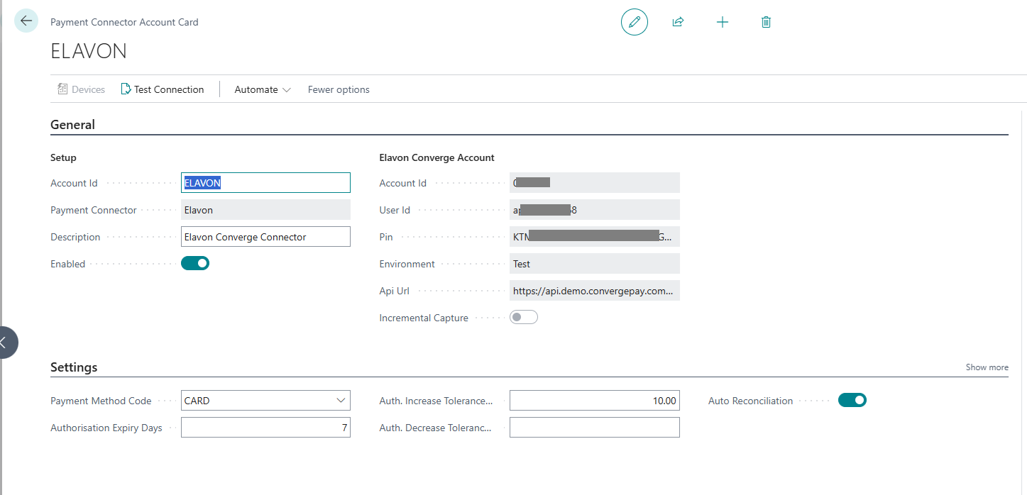 - Enter an Account Id. The Account Id can be anything you wish to refer this Payment Connector Account profile to and it can be changed later.