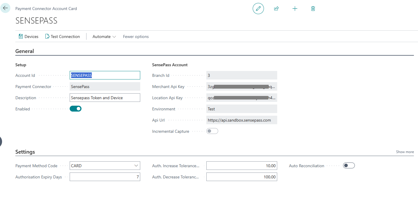 Incremental Capture supports a single Authorization and multiple captures. Select Enable to enable Incremental Capture. Sensepass and their processor must support this feature and the Merchant Account must be setup to support this. Check with Sensepass. |